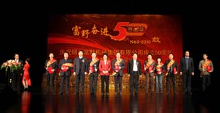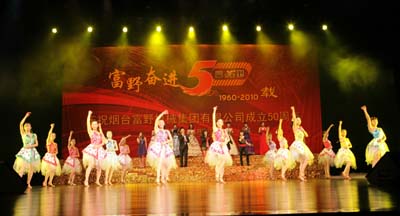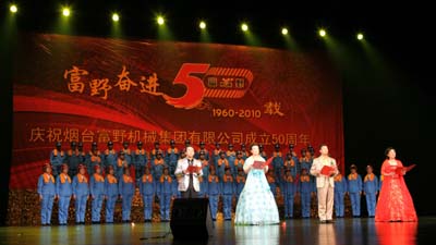 2010年11月7日上午,煙臺富野機械集團有限公司成立五十周年盛典暨大型文藝演出在煙臺大劇院隆重舉行。中國對外經貿企業(yè)協(xié)會副會長、山東省對外經貿協(xié)會煙臺分會會長許志強,煙臺市經濟和信息化委員會主任孫濤,煙臺市工商業(yè)聯(lián)合會主席夏曉峰,煙臺市民營企業(yè)協(xié)會會長欒魯閩,煙臺市機電國有控股有限公司董事長趙衛(wèi)紅,煙臺市總工會副主席張曉東,原煙臺市機械局的領導、機械行業(yè)企業(yè)及其他兄弟企事業(yè)單位的代表、集團老領導以及集團所屬各企業(yè)1100余名員工共同參加了慶典活動。